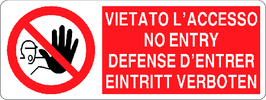 Cartello Alluminio 333X125 MM VIETATO L'ACCESSO IN 4 lingue