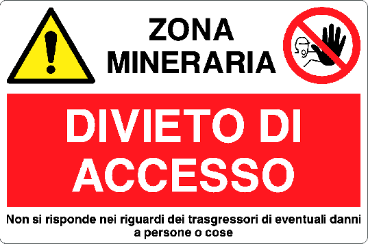 Cartello Alluminio 500X333 MM ZONA MINERARIA - DIVIETO DI ACCESSO