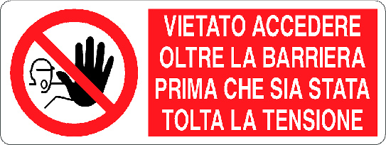 Cartello Alluminio 333X125 MM VIETATO ACCEDERE OLTRE LA BARRIERA PRIMA CHE SIA STATA TOLTA LA TENSIONE