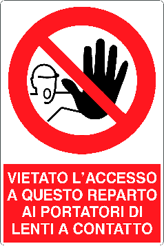 Cartello Alluminio 333X500 MM VIETATO L'ACCESSO A QUESTO REPARTO AI PORTATORI DI LENTI A CONTATTO