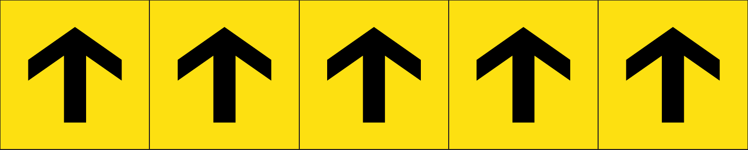 CONF. 5 PZ - FOGLIO.ADES.PVC.250x50 MM 5 ETICH. 50X50 MM - F.DO GIALLO FRECCIA NERA