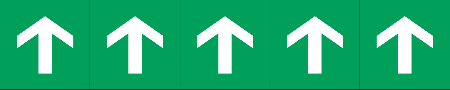 CONF. 5 PZ - FOGLIO.ADES.PVC.250x50 MM 5 ETICH. 50X50 MM - F.DO VERDE FRECCIA BIANCA