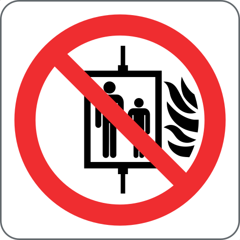 Cartello Alluminio ADESIVIZZATO 125X125 MM SIMBOLO DIVIETO USO ASCENSORE IN CASO DI INCENDIO