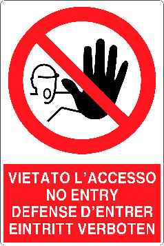 Cartello Alluminio 333X500 MM VIETATO L'ACCESSO IN 4 lingue