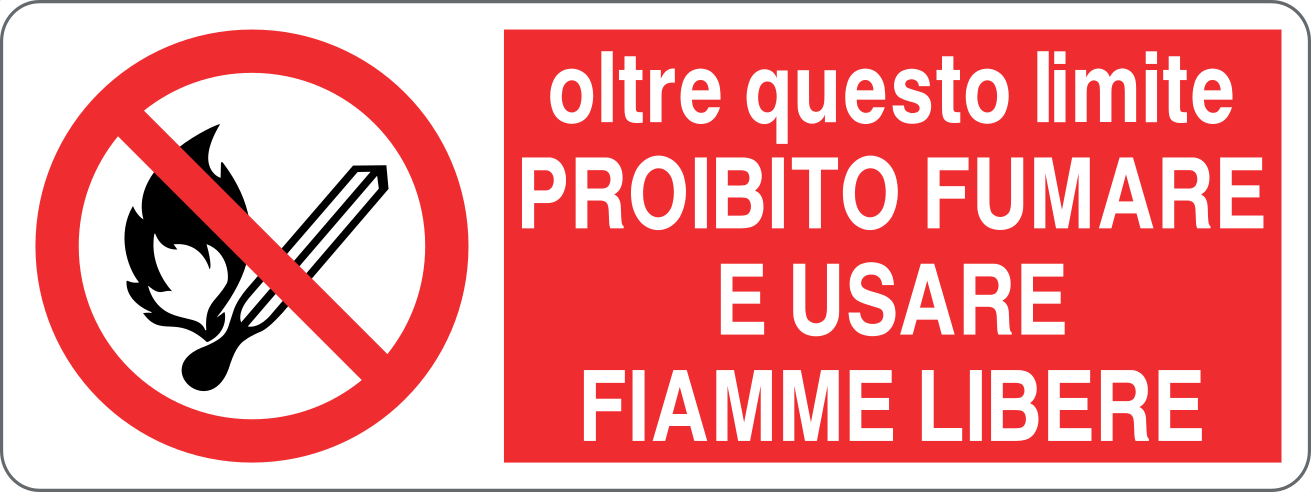 Cartello Alluminio 333X125 MM OLTRE QUESTO LIMITE PROIBITO FUMARE E USARE FIAMME LIBERE