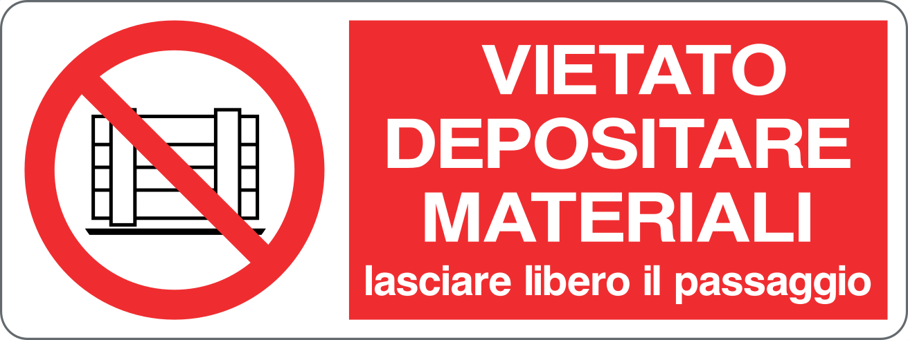 Cartello Alluminio 333X125 MM VIETATO DEPOSITARE MATERIALI LASCIARE LIBERO IL PASSAGGIO