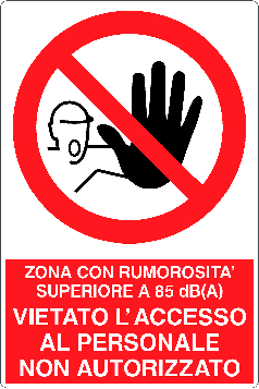 Cartello Alluminio 333X500 MM ZONA CON RUMOROSITA' SUPERIORE A 85 dBA