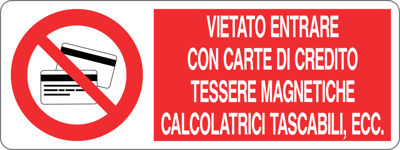Cartello Alluminio 333X125 MM VIETATO ENTRARE CON CARTE DI CREDITO O TESSERE MAGNETICHE