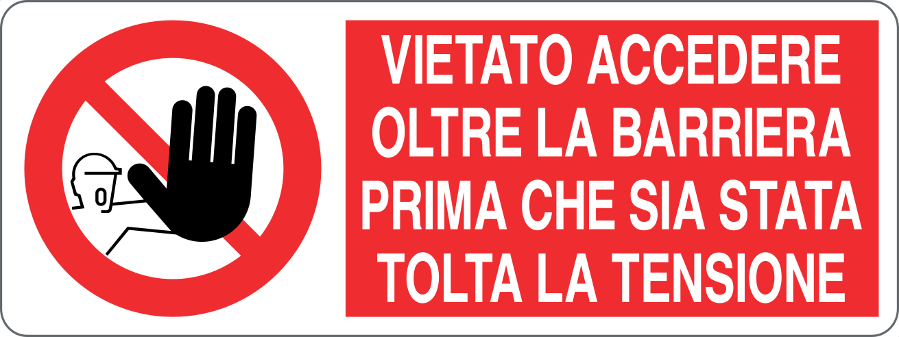 Cartello Alluminio 333X125 MM VIETATO ACCEDERE OLTRE LA BARRIERA PRIMA CHE SIA STATA TOLTA LA TENSIONE