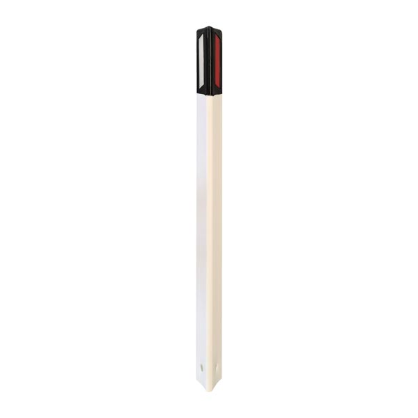 Segnalimite normalizzato ANAS per strade a doppio senso di circolazione, realizzato interamente in polietilene ad alta densità, completo di due catadiottri rettangolari di colore rosso sul lato destro e bianco sul lato sinistro.