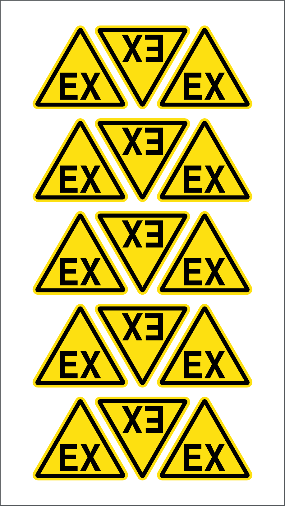 Foglio Adesivo PVC 15 ETICH.LATO 52 MM SIMBOLO EX (ATMOSFERA ESPLOSIVA)