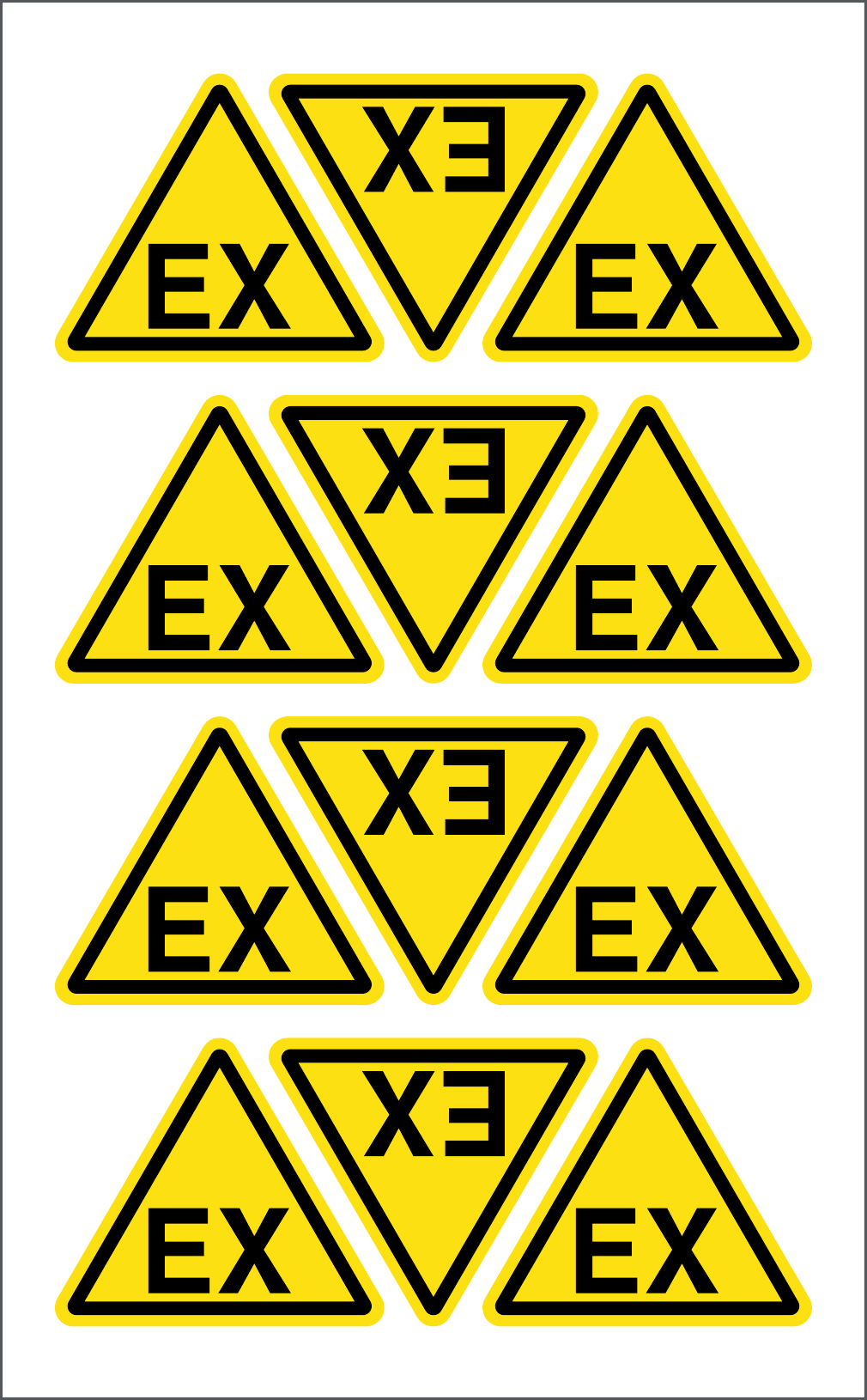 Foglio Adesivo PVC 12 ETICH.LATO 65 MM SIMBOLO EX (ATMOSFERA ESPLOSIVA)