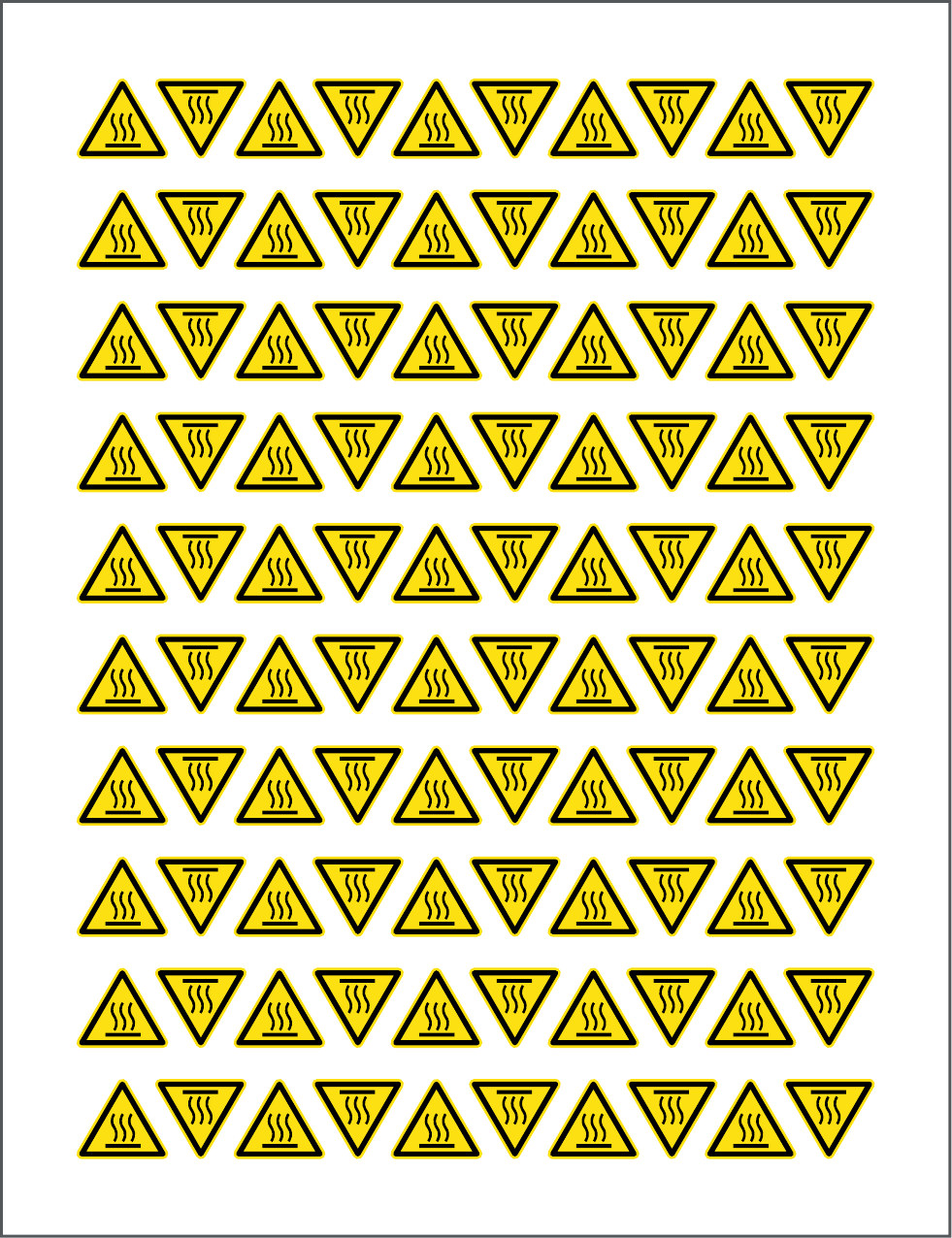 Foglio Adesivo PVC 100 ETICH.LATO 16 MM SIMBOLO PERICOLO ALTE TEMPERATURE