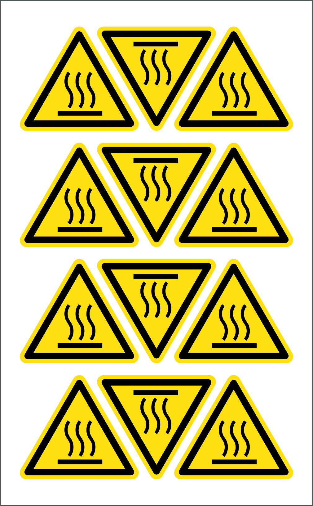 Foglio Adesivo PVC da 12 ETICH. LATO 65 MM SIMBOLO PERICOLO ALTE TEMPERATURE