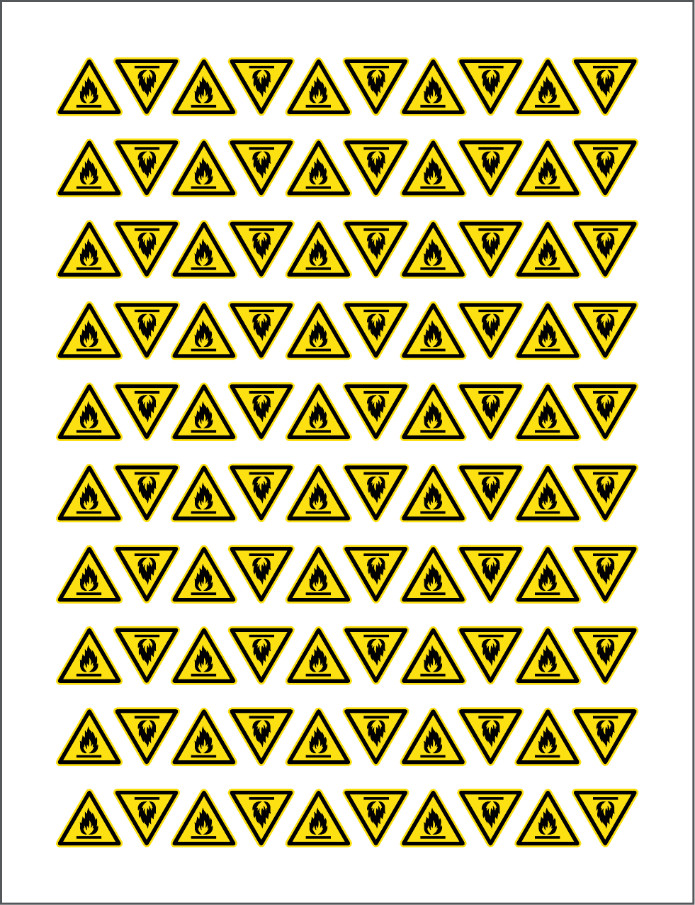 Foglio Adesivo PVC 100 ETICH.LATO 16 MM SIMBOLO PERICOLO INFIAMMABILE