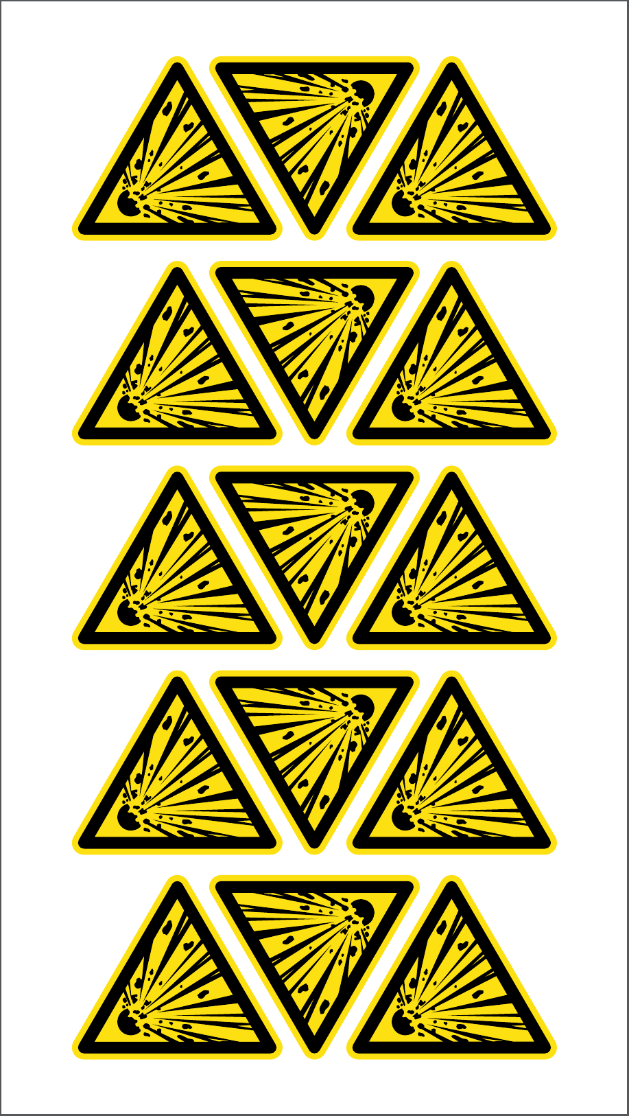 Foglio Adesivo PVC 15 ETICH.LATO 52 MM SIMBOLO PERICOLO MATERIALE ESPLOSIVO