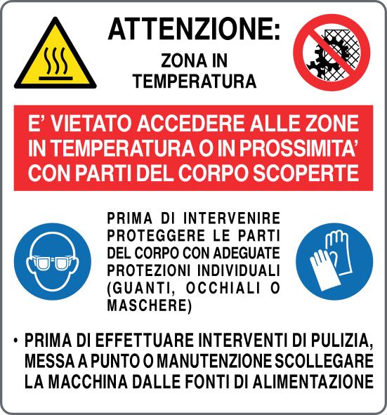 Cartello Alluminio 140X150 MM ATTENZIONE ZONA IN TEMPERATURA VIETATO ACCEDERE ALLE ZONE