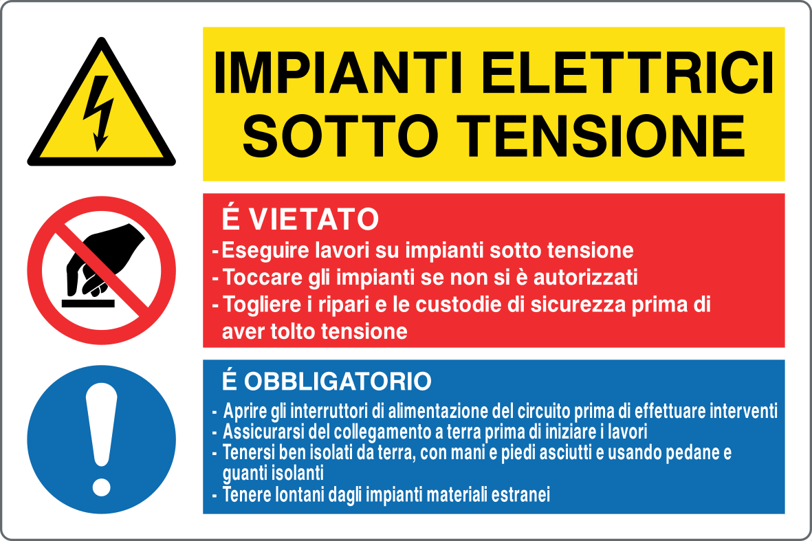Cartello Alluminio 300X200 MM IMPIANTI ELETTRICI SOTTO TENSIONE - VIETATO ESEGUIRE LAVORI