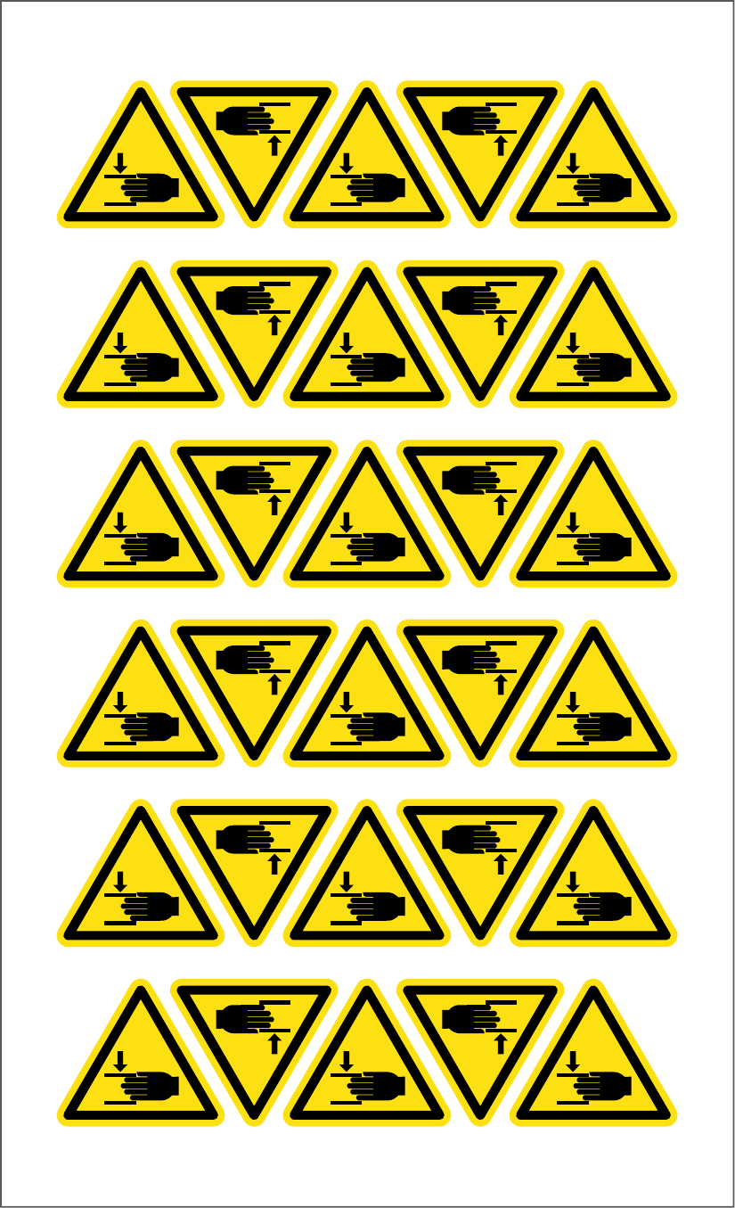 Foglio Adesivo PVC 30 ETICH.LATO 32 MM SIMBOLO PERICOLO ATTENZIONE ALLE MANI