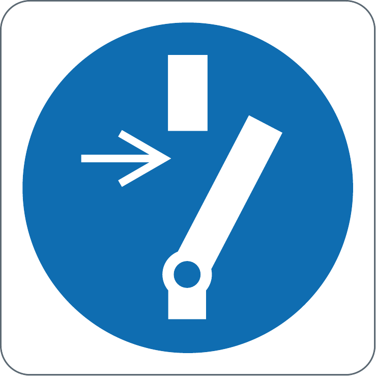 Cartello Alluminio 60X60 MM SIMBOLO OBBLIGO DISCONNETTERE MACCHINARIO PRIMA DI EFFETTUARE MANUTENZIONI O RIPARAZIONI