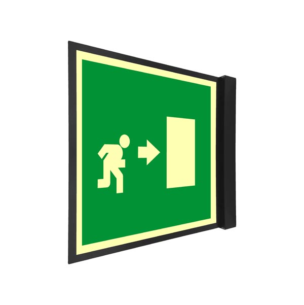 Cartello Forex Bifacciale Luminescente 120X120 MM SIMBOLO USCITA DI EMERGENZA A DESTRA