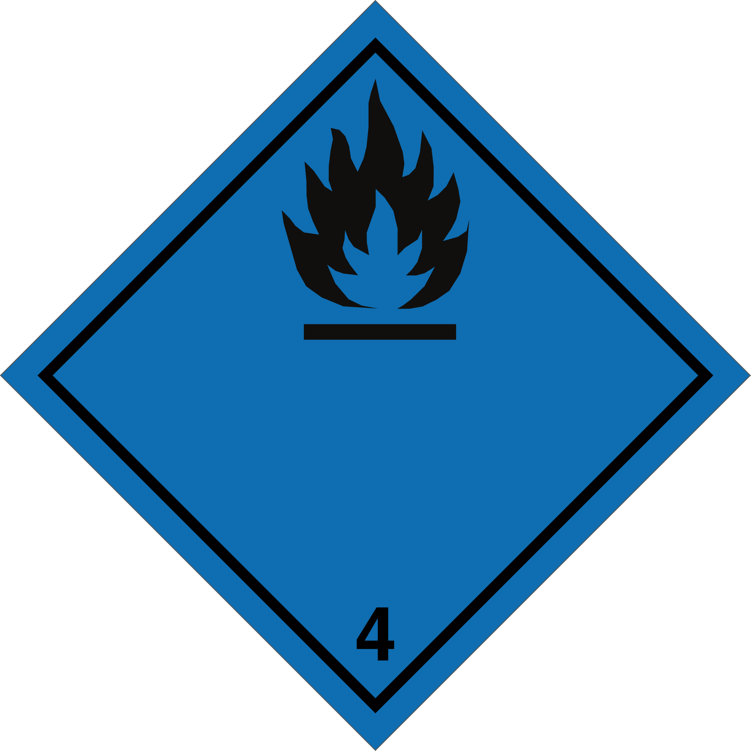 Cartello in alluminio spess. 0,7 mm. per trasporto ADR. Colore blu con stampa nera, "prodotto che emana gas infiammabili a contatto con l'acqua Cl. 4".
