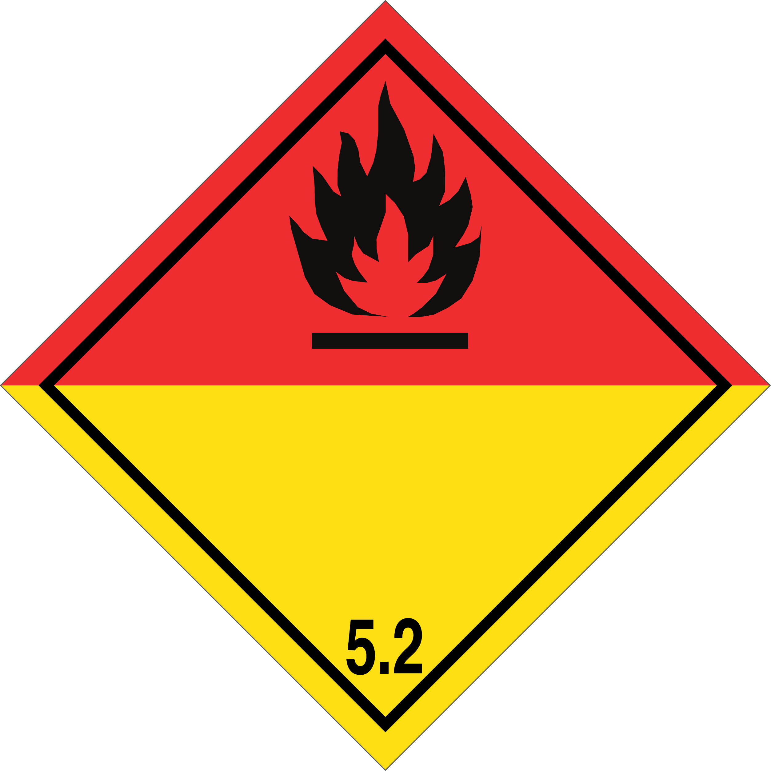 Cartello in alluminio spess. 0,7 mm. per trasporto ADR. Colore giallo/rosso con stampa nera, "perossidi organici Cl. 5.2".