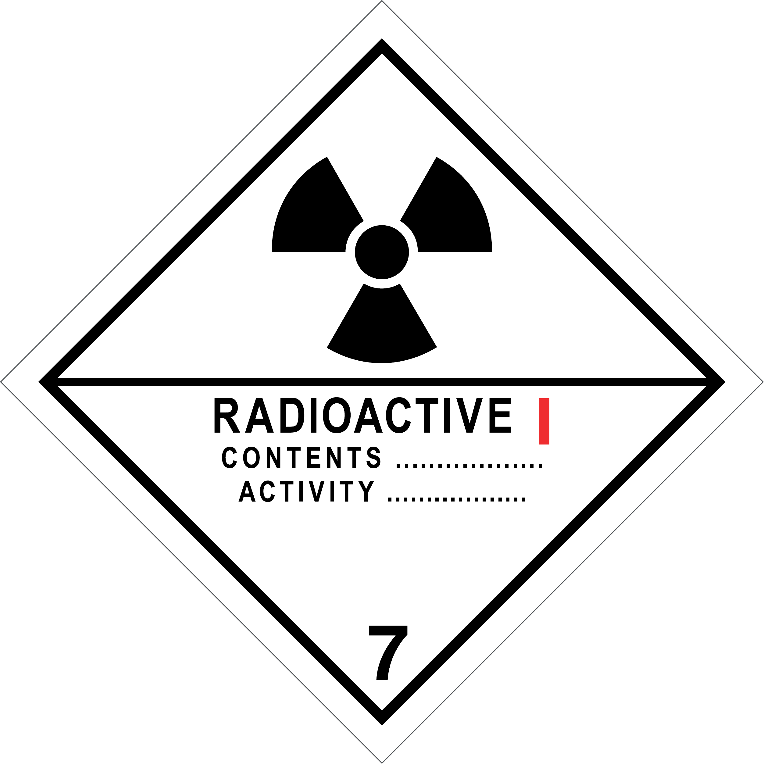 Cartello in alluminio spess. 0,7 mm. per trasporto ADR. Colore bianco con stampa nera, "radioattivo I Cl. 7".