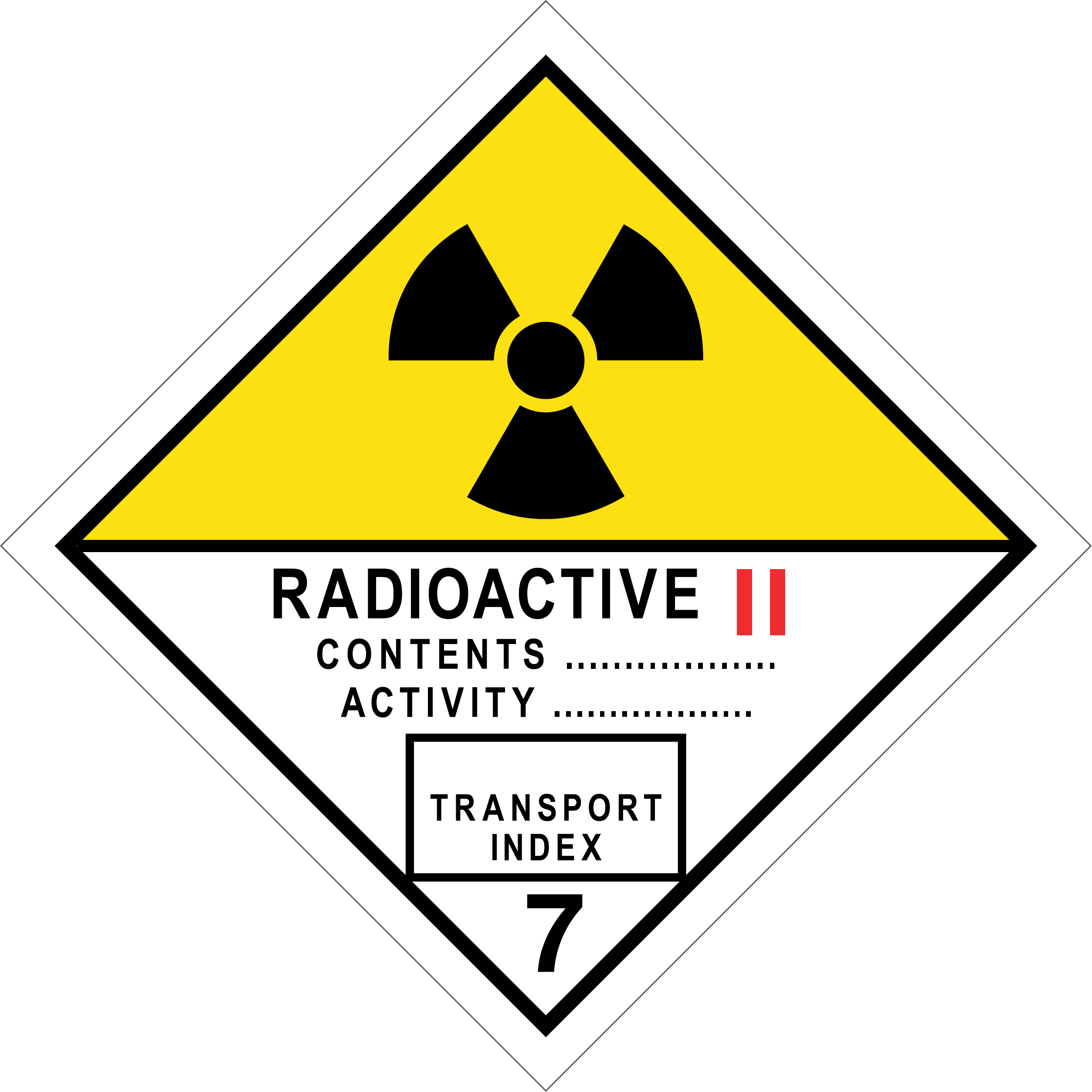 Cartello in alluminio spess. 0,7 mm. per trasporto ADR. Colore bianco/giallo con stampa nera, "radioattivo II Cl. 7".