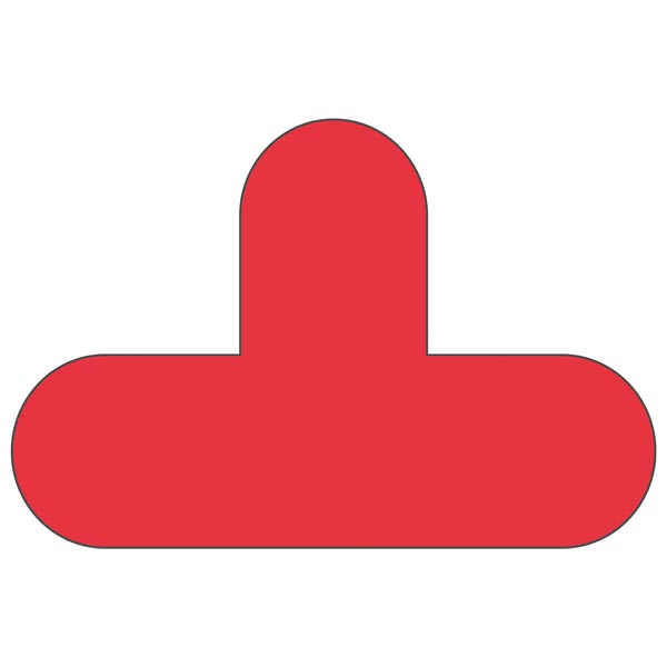 Segnaletica da pavimento in PVC super resistente con laminazione protettiva antiscivolo, colore ROSSO. Forma a "T".