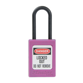 Lucchetto di sicurezza dielettrico in materiale termoplastico in Zenex™ con archetto diam. 4,76 mm. in nylon amagnetico alto 38 mm e senza blocco estrazione chiave - larghezza 35 mm. Sistema KA, colore Viola.