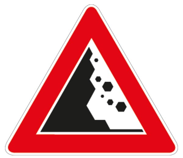 Cartello Lamiera Scatolato RIFRANGENTE LATO 600 MM CADUTA MASSI DA SINISTRA
