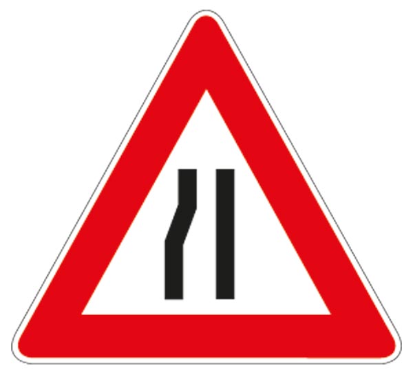 Cartello Lamiera Scatolato ALTA RIFRANGENZA LATO 900 MM STRETTOIA ASIMMETRICA A SINISTRA