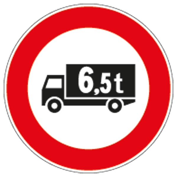 Cartello Alluminio Scatolato RIFRANGENTE DIAM.600 MM TRANSITO VIETATO AI VEICOLI DI MASSA A PIENO CARICO SUPERIORE ... TON.