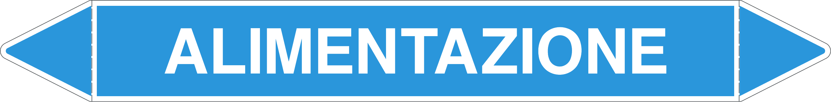 Etichetta autoadesiva per tubazioni realizzata esclusivamente in stampa digitale su PVC con film protettivo anti UV. Colore azzuro con dicitura bianca.
