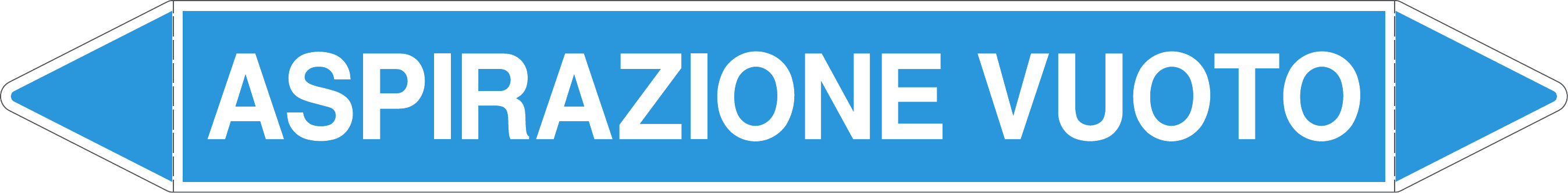 Etichetta autoadesiva per tubazioni realizzata esclusivamente in stampa digitale su PVC con film protettivo anti UV. Colore azzuro con dicitura bianca.