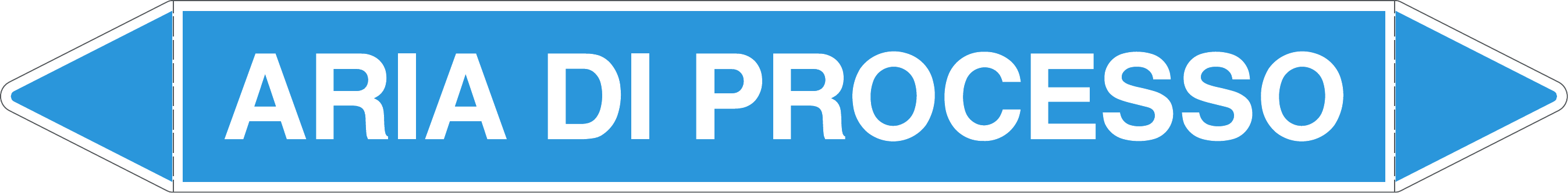 Etichetta autoadesiva per tubazioni realizzata esclusivamente in stampa digitale su PVC con film protettivo anti UV. Colore azzuro con dicitura bianca.