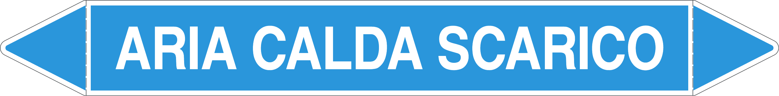 Etichetta autoadesiva per tubazioni realizzata esclusivamente in stampa digitale su PVC con film protettivo anti UV. Colore azzuro con dicitura bianca.