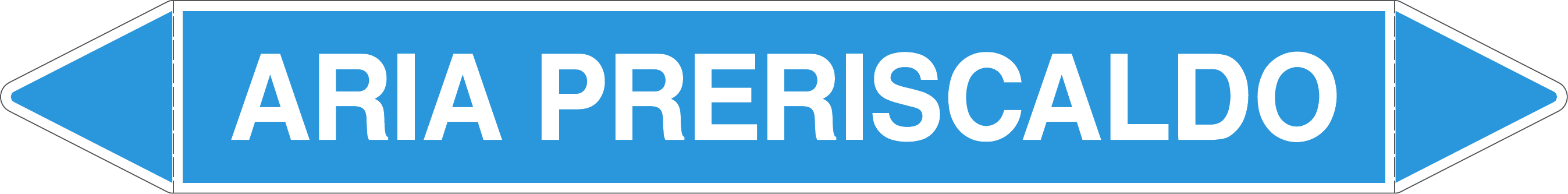 Etichetta autoadesiva per tubazioni realizzata esclusivamente in stampa digitale su PVC con film protettivo anti UV. Colore azzuro con dicitura bianca.
