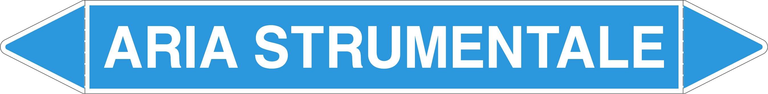 Etichetta autoadesiva per tubazioni realizzata esclusivamente in stampa digitale su PVC con film protettivo anti UV. Colore azzuro con dicitura bianca.