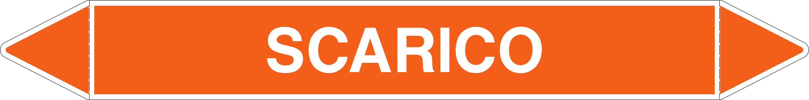Etichetta autoadesiva per tubazioni realizzata esclusivamente in stampa digitale su PVC con film protettivo anti UV. Colore arancio con dicitura bianca.