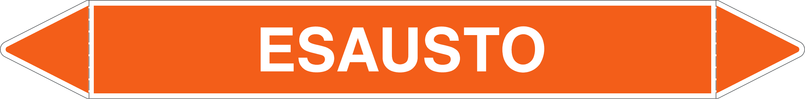 Etichetta autoadesiva per tubazioni realizzata esclusivamente in stampa digitale su PVC con film protettivo anti UV. Colore arancio con dicitura bianca.