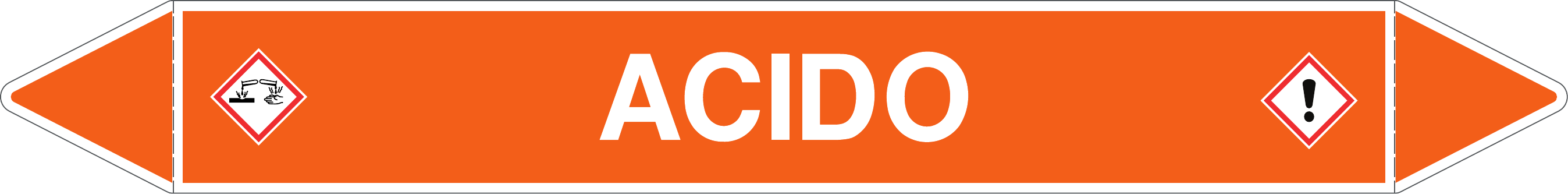 Etichetta autoadesiva per tubazioni realizzata esclusivamente in stampa digitale su PVC con film protettivo anti UV. Colore arancio con dicitura bianca.