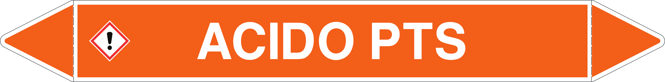 Etichetta autoadesiva per tubazioni realizzata esclusivamente in stampa digitale su PVC con film protettivo anti UV. Colore arancio con dicitura bianca.