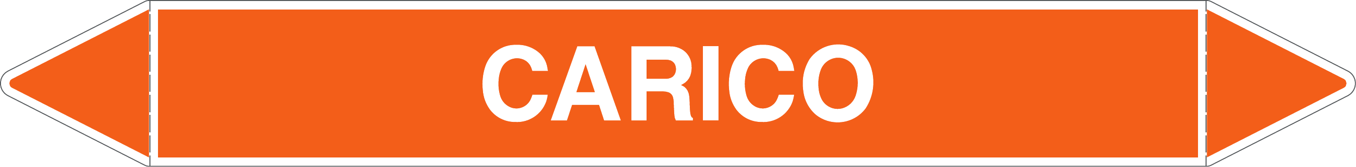 Etichetta autoadesiva per tubazioni realizzata esclusivamente in stampa digitale su PVC con film protettivo anti UV. Colore arancio con dicitura bianca.