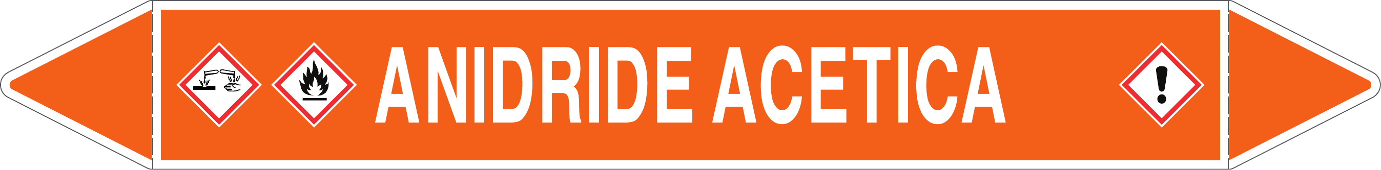 Etichetta autoadesiva per tubazioni realizzata esclusivamente in stampa digitale su PVC con film protettivo anti UV. Colore arancio con dicitura bianca.
