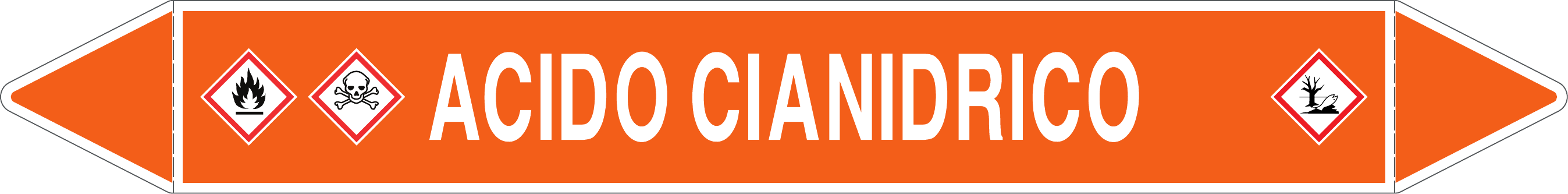 Etichetta autoadesiva per tubazioni realizzata esclusivamente in stampa digitale su PVC con film protettivo anti UV. Colore arancio con dicitura bianca.