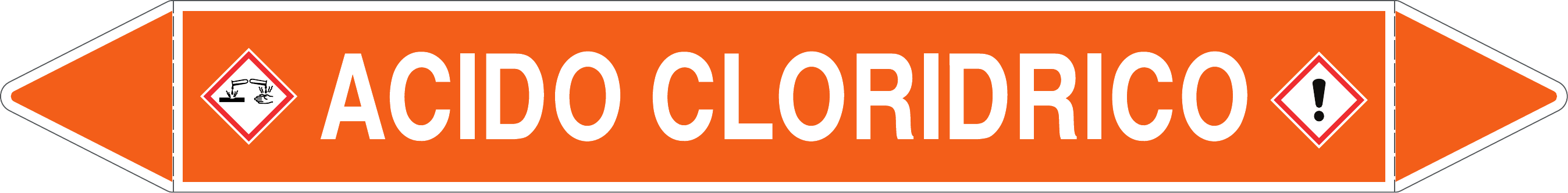 Etichetta autoadesiva per tubazioni realizzata esclusivamente in stampa digitale su PVC con film protettivo anti UV. Colore arancio con dicitura bianca.