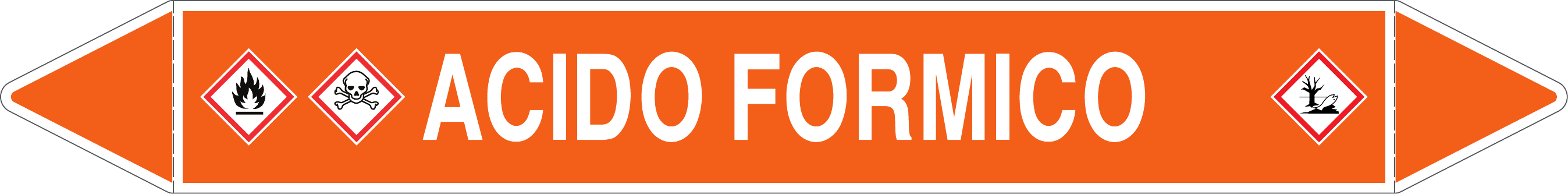 Etichetta autoadesiva per tubazioni realizzata esclusivamente in stampa digitale su PVC con film protettivo anti UV. Colore arancio con dicitura bianca.