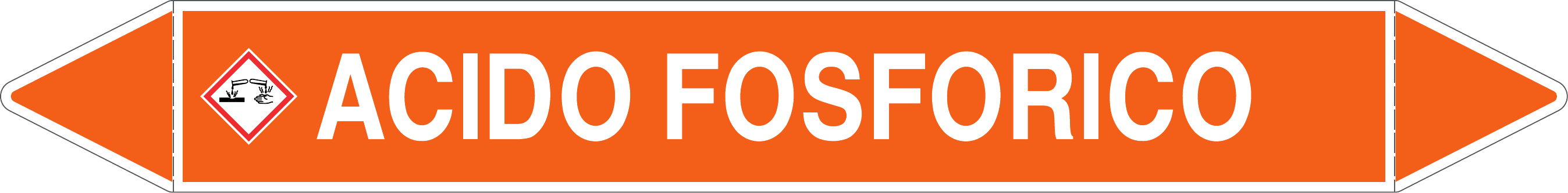 Etichetta autoadesiva per tubazioni realizzata esclusivamente in stampa digitale su PVC con film protettivo anti UV. Colore arancio con dicitura bianca.